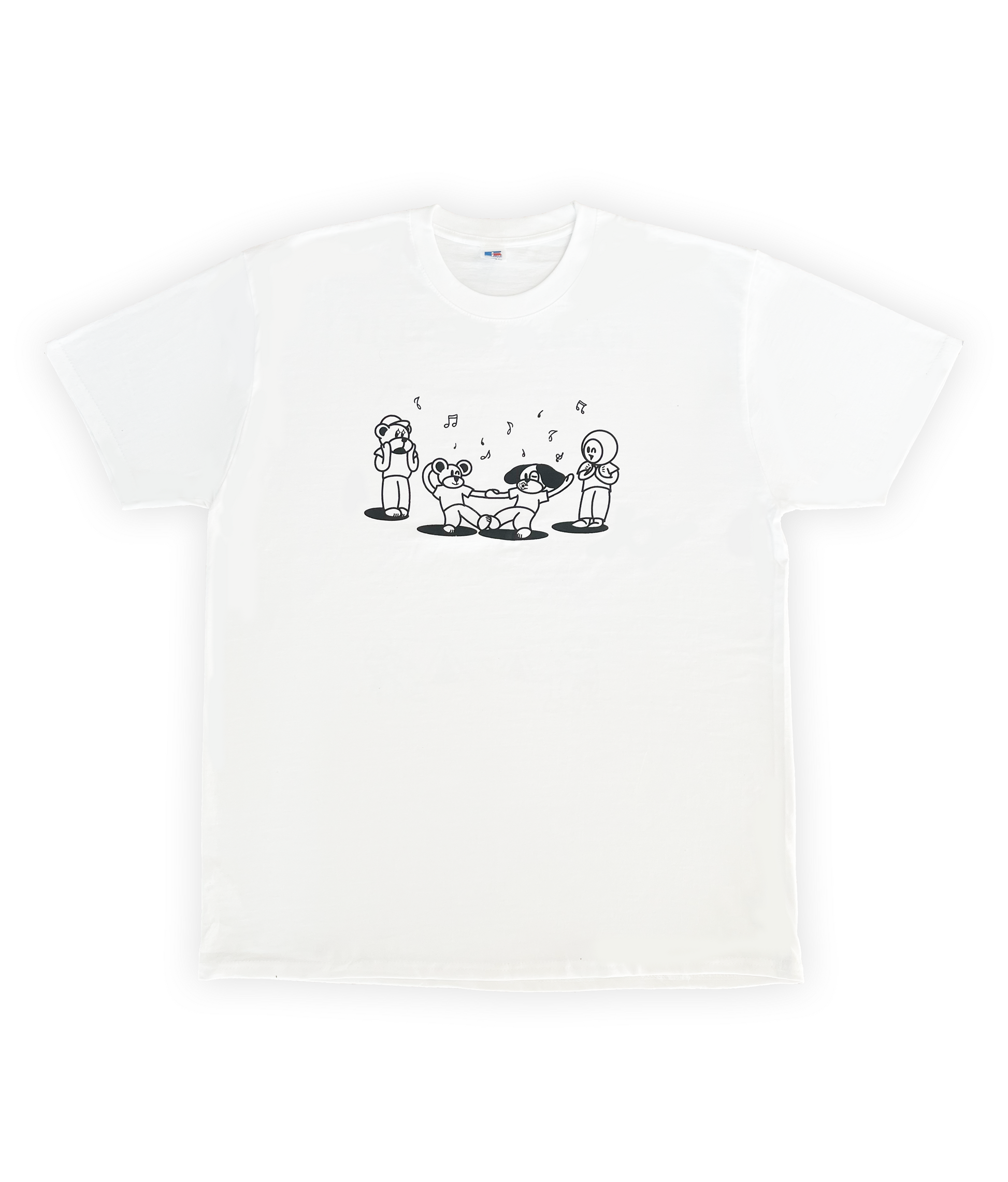 Tee blanc oversize en coton épais 215 g/m², sérigraphié encre à eau noir.